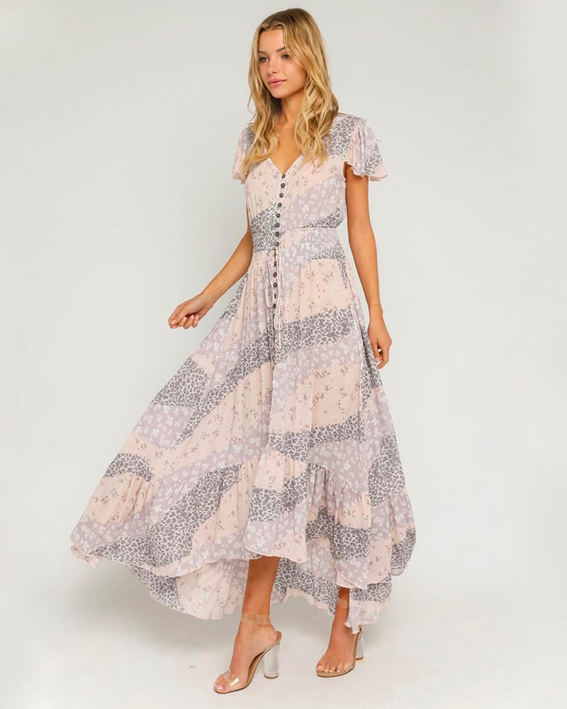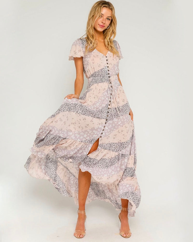 Maxi dresses definitely give off the ultimate summer vibes. Flowy dresses are perfect for beach parties and tropical vacations. This stunning pastel border maxi dress is a must-have for the summer, featuring a button down front, slightly ruffled sleeves, and a slight v-neck front! Wear this with your favorite pair of sandals or heels for a gorgeous summer look.