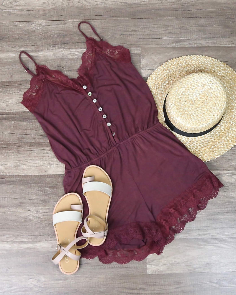 POL BSIC - Vintage Acid Wash Romper in Burgundy