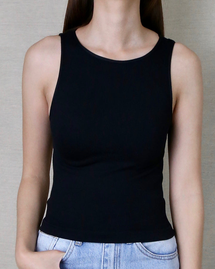 This basic crop top is super cute and perfect for layering! Featuring a seamless ribbed knit and a high neckline, this crop top is perfect when worn with a skirt and some heels for a classy everyday look!