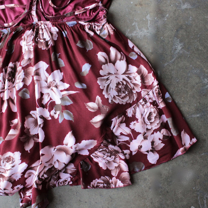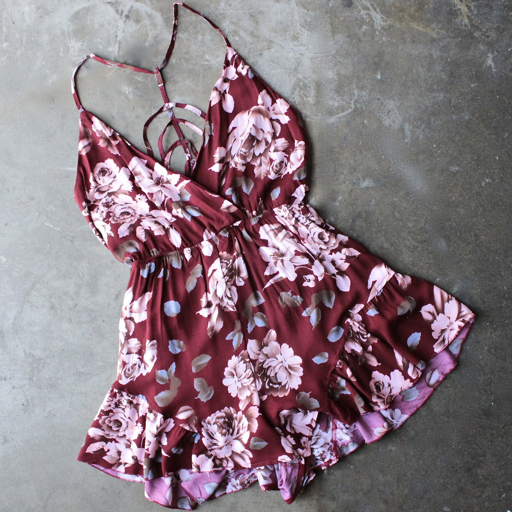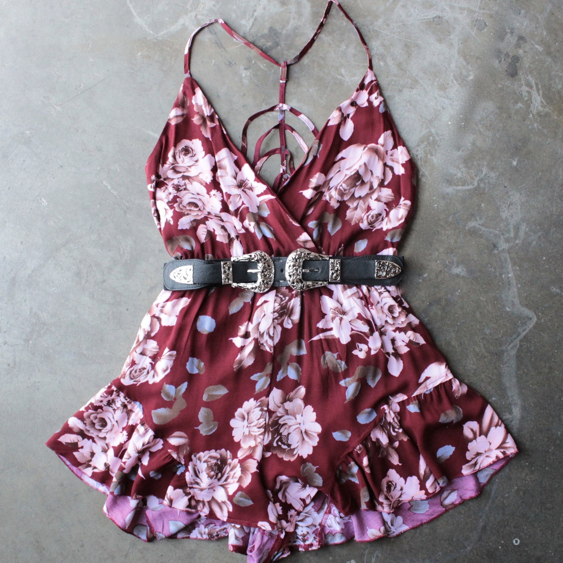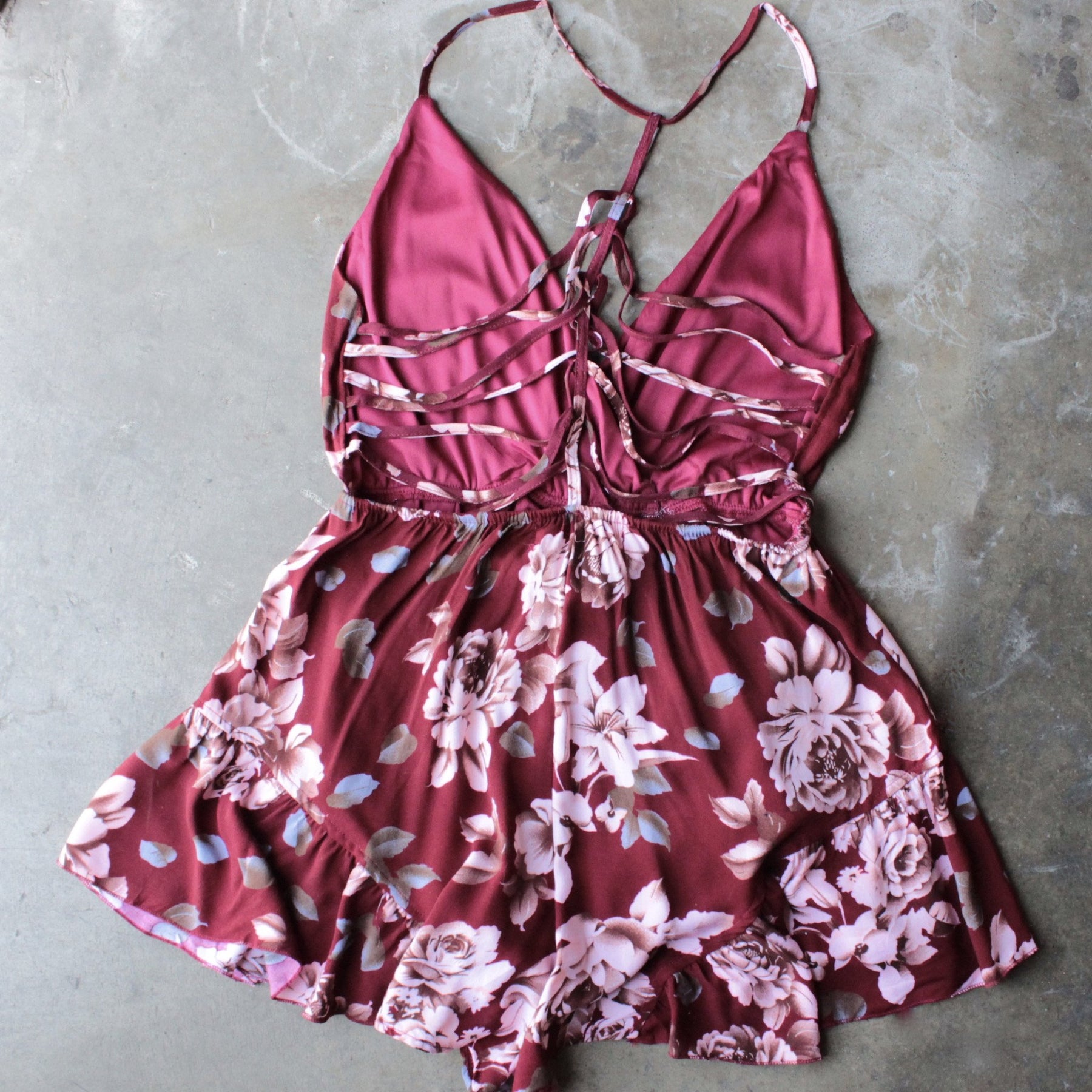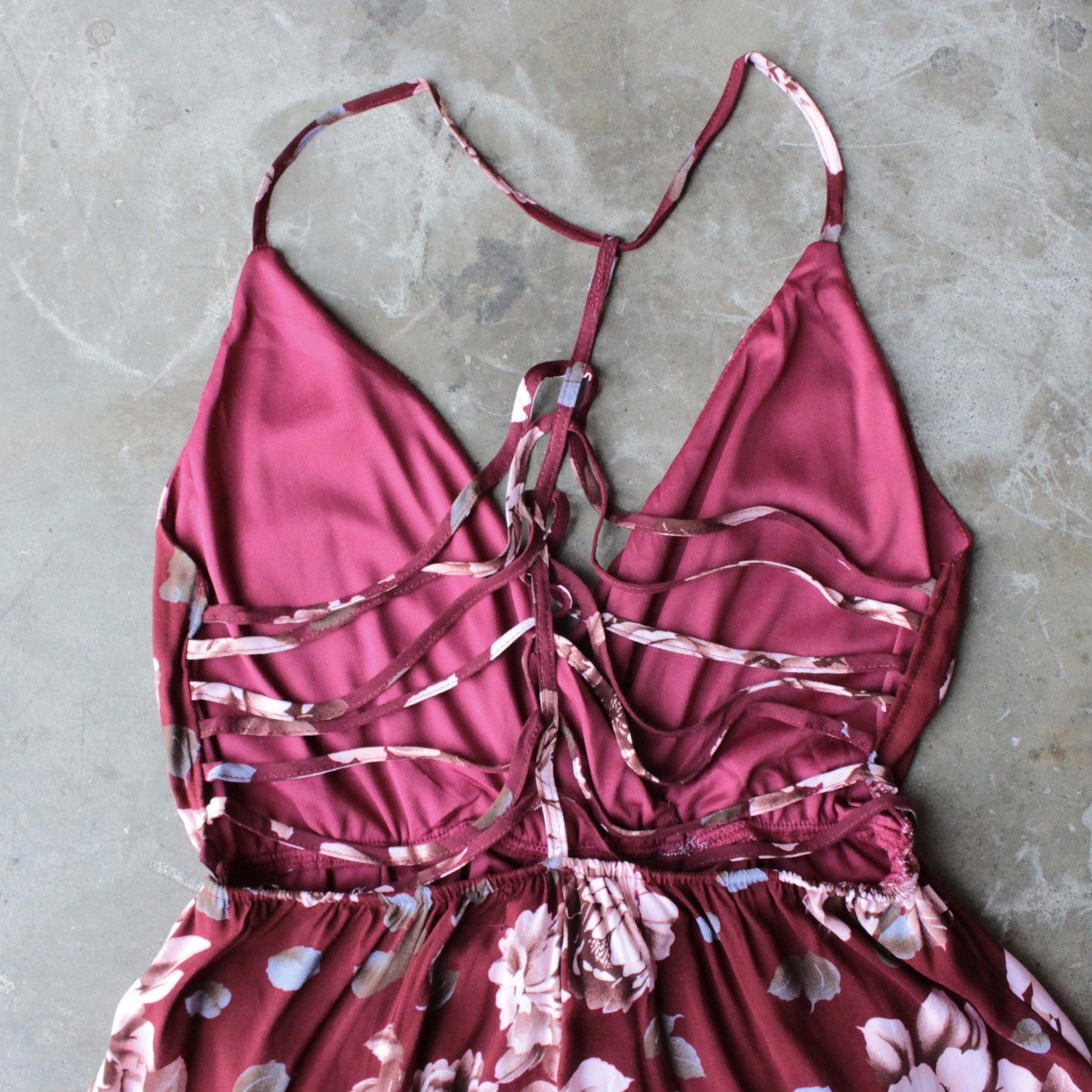 I absolute loved the pattern of this romper and the strappy back detail. However, when I received this in the mail it was incredibly wrinkled so I had to steam it. I ordered an XS and when I got tried it on it was WAY too big. I am usually a size 0, 5'3 and this wasn't true to size. The front of the romper dips all the way down to my stomach, and the halter is not adjustable. The bottom of the romper has ruffles which look cute in the front but are actually longer and less flattering in the back. I'm really disappointed with how this fit on me and I wouldn't recommend it to a thin, petite woman however it may work for someone who is tall with a butt!