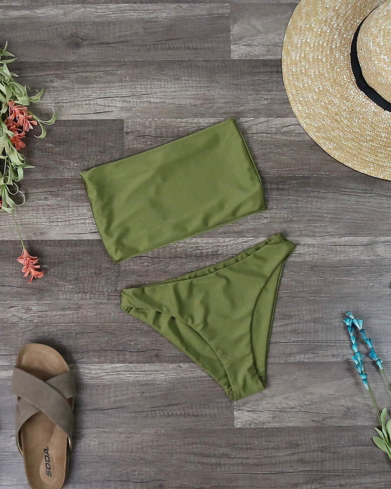 Reverse - Mess Around Bandeau Bikini Set in Olive Shine