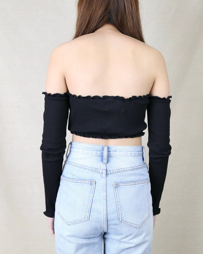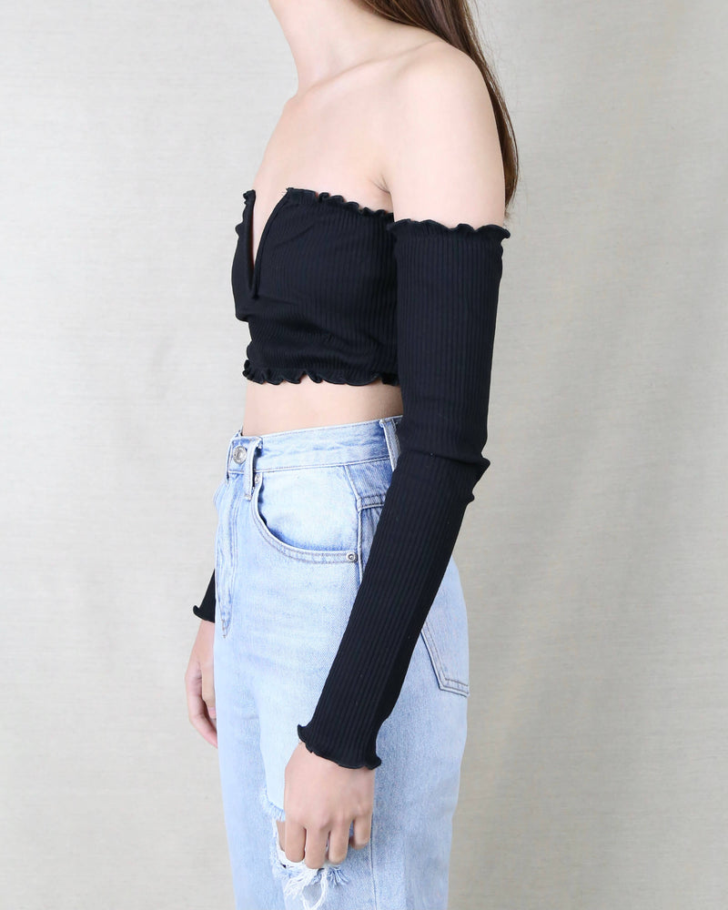 Reverse - Pretty Lady Ribbed Crop Top with Long Sleeves in Black