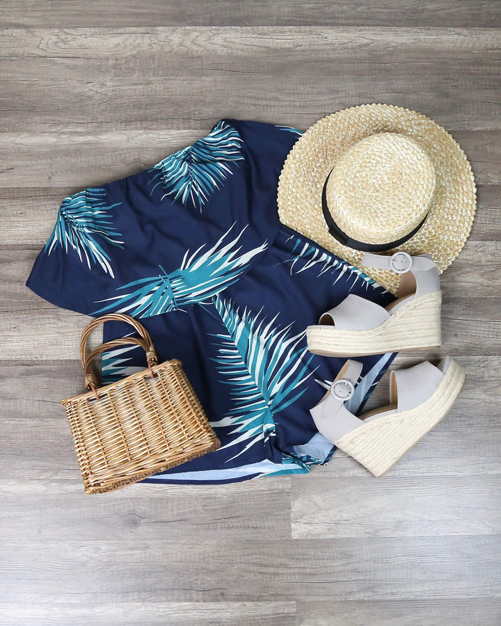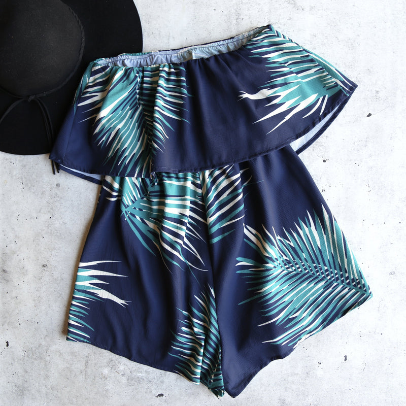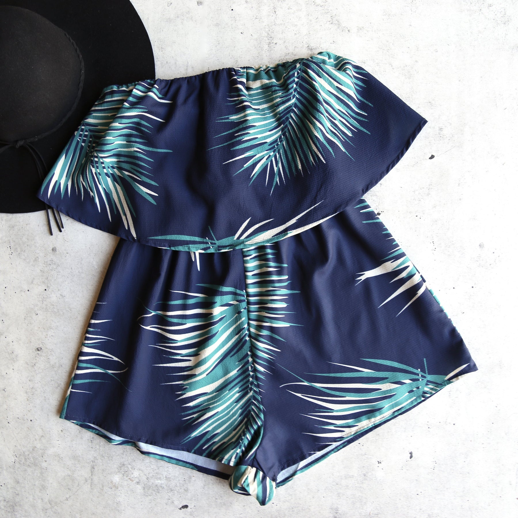 Reverse - Tainted Love Strapless Romper - Navy/Leaf