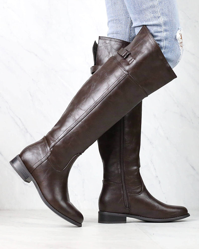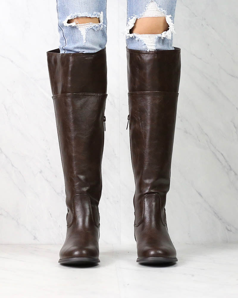 These amazing riding boots feature a side zipper for a quick easy an easy in and out, and sassy brass side buckle. Calves are adjustable with tab.