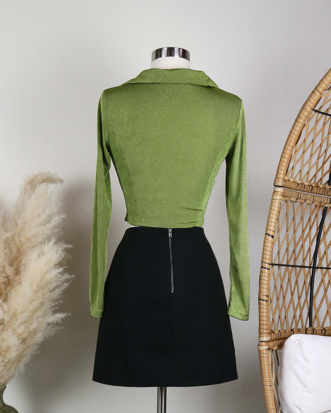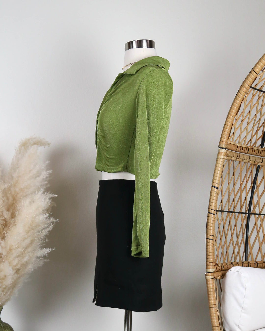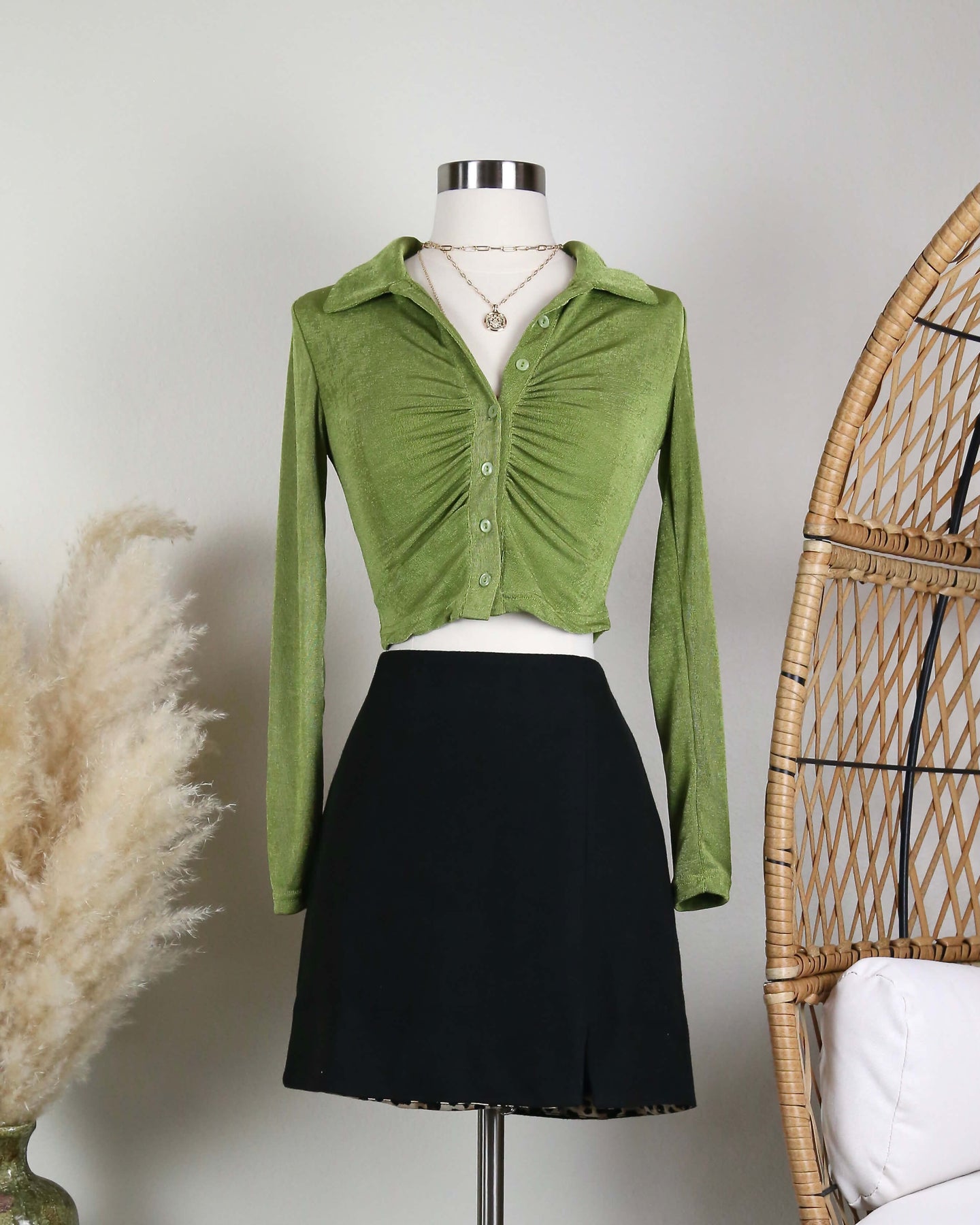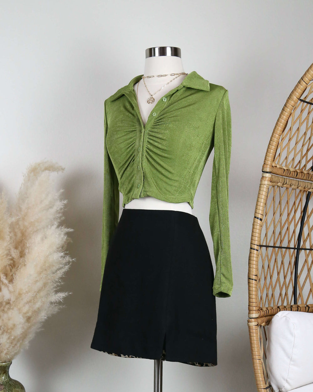 Velvet Ruched Scrunched Top in a Green Tone