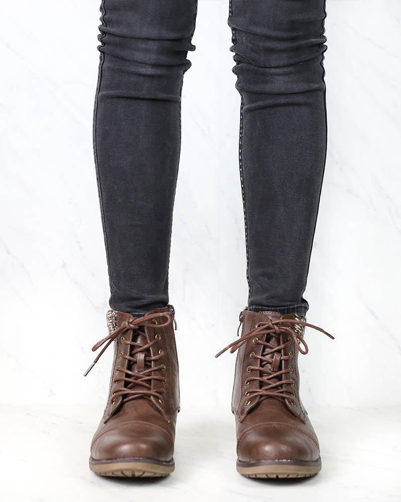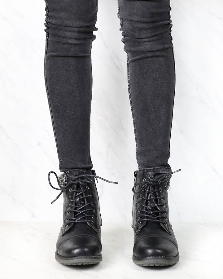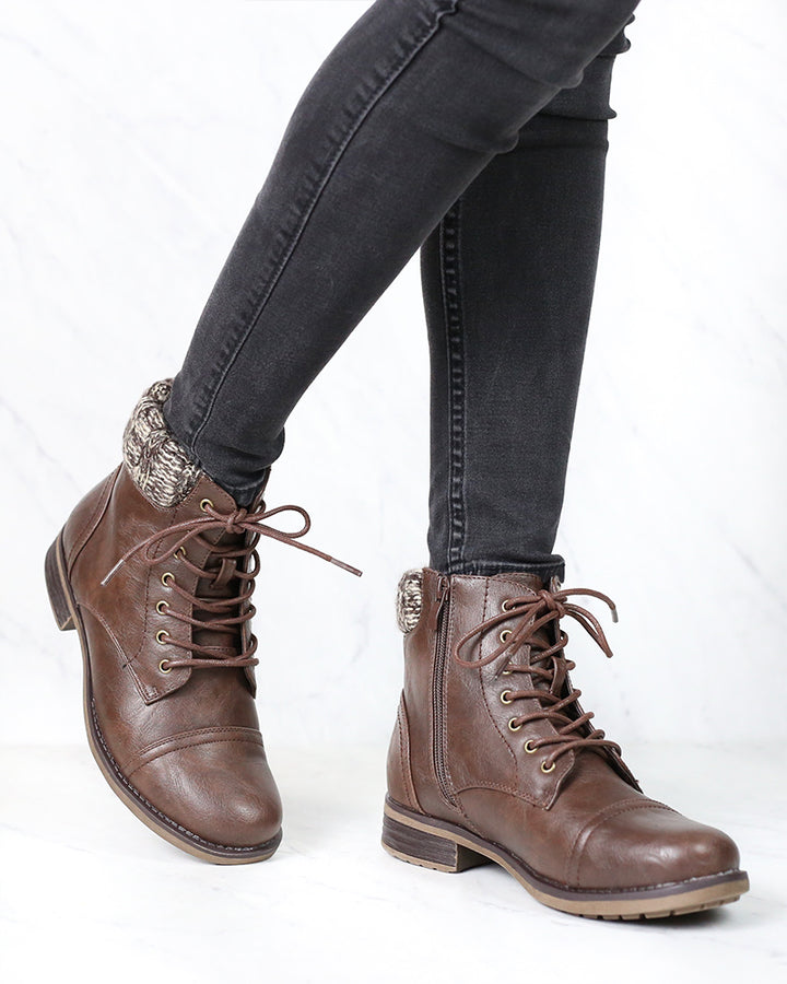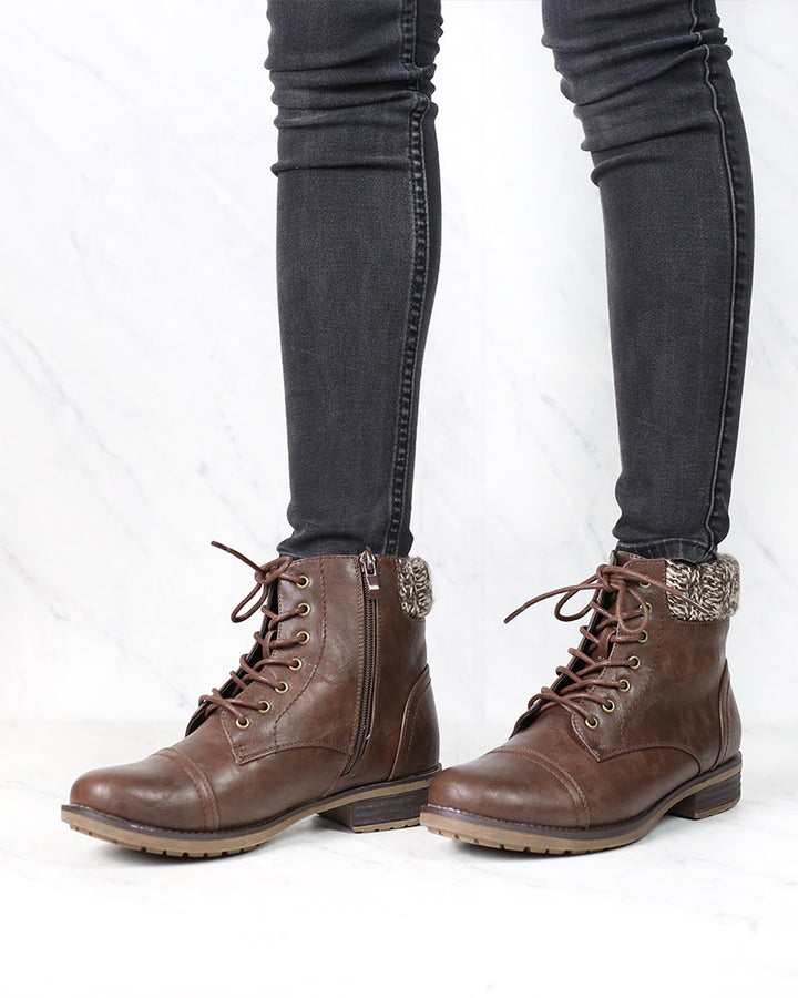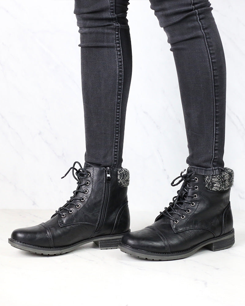 This ankle bootie features a sweater cuff to keep you warm on those cold winter days. Perfect for the fall and winter seasons, pair this with any outfit to stay warm and cute!
