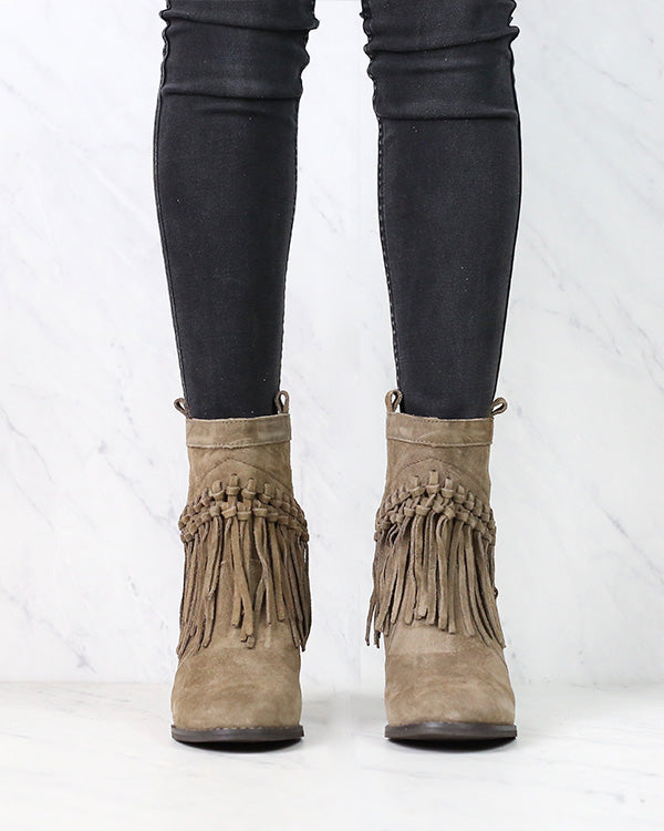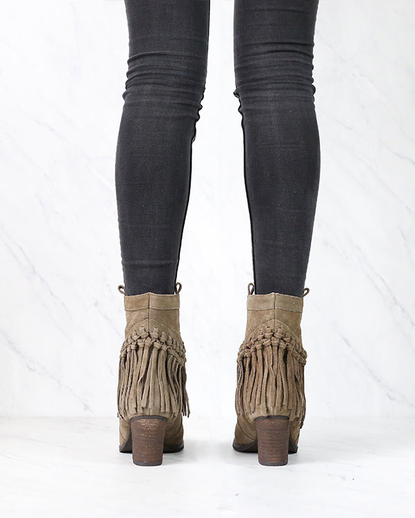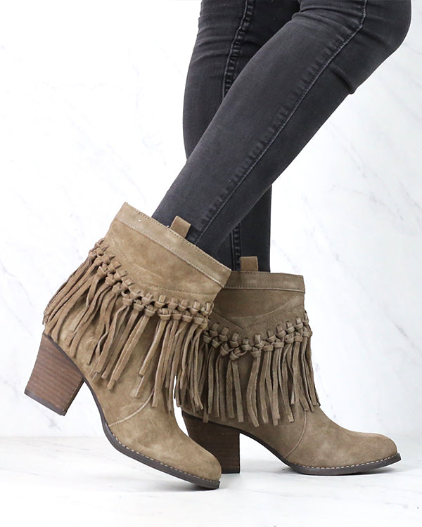 I fell in love with the picture of these boots! They came quickly and they are wonderful quality but that's where the good things end. They are not that color! They are very dark chocolate. And the suede is so smooth they look extremely dressy!