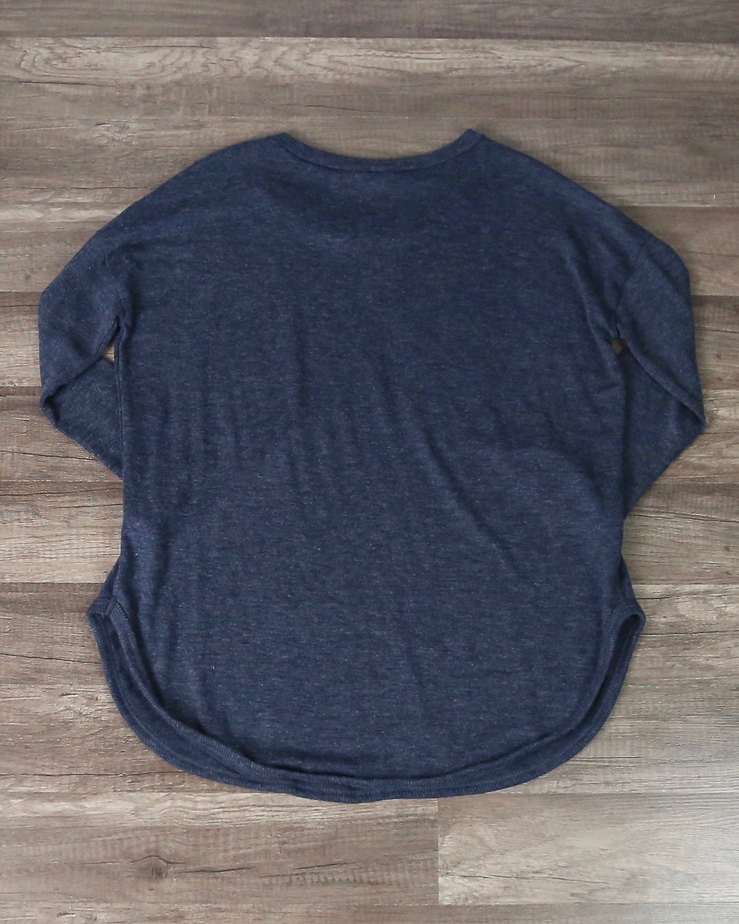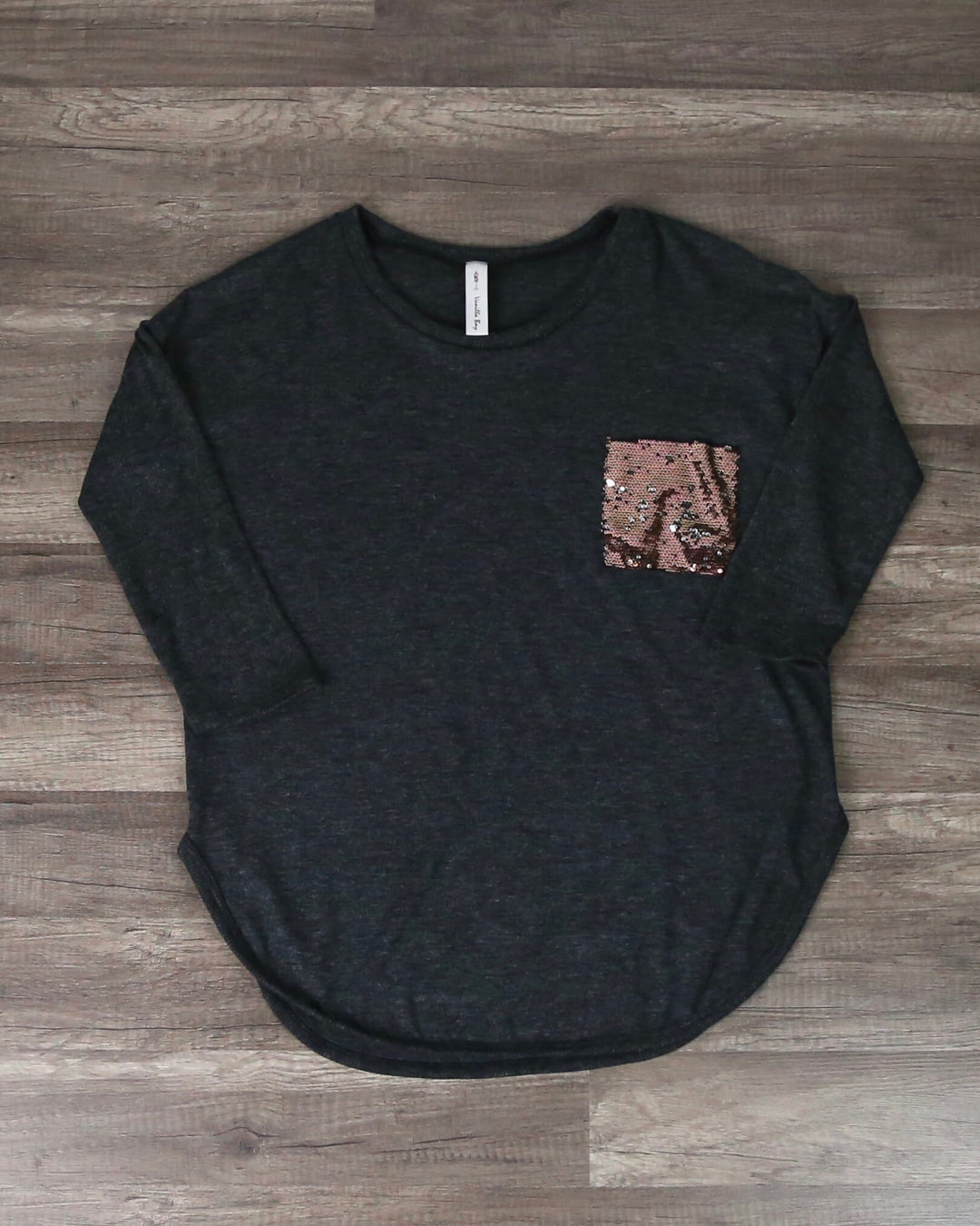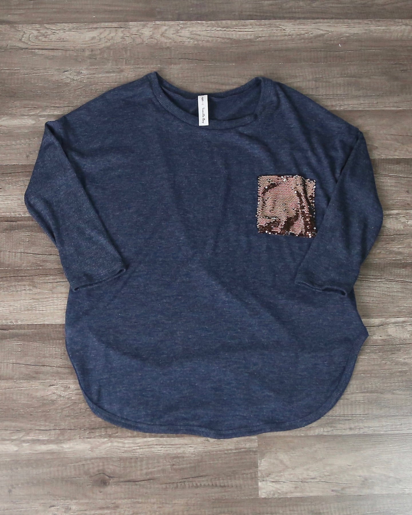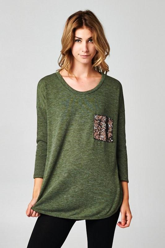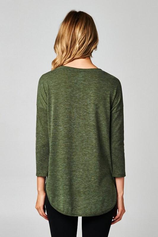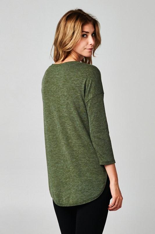 Soft, lightweight hacci tunic. Featuring quarter length sleeves, round split bottom hems, a boat neckline, and functional sequin pocket. Pair this top with some jeans and your favorite pair of hoodies as a cute fall look!