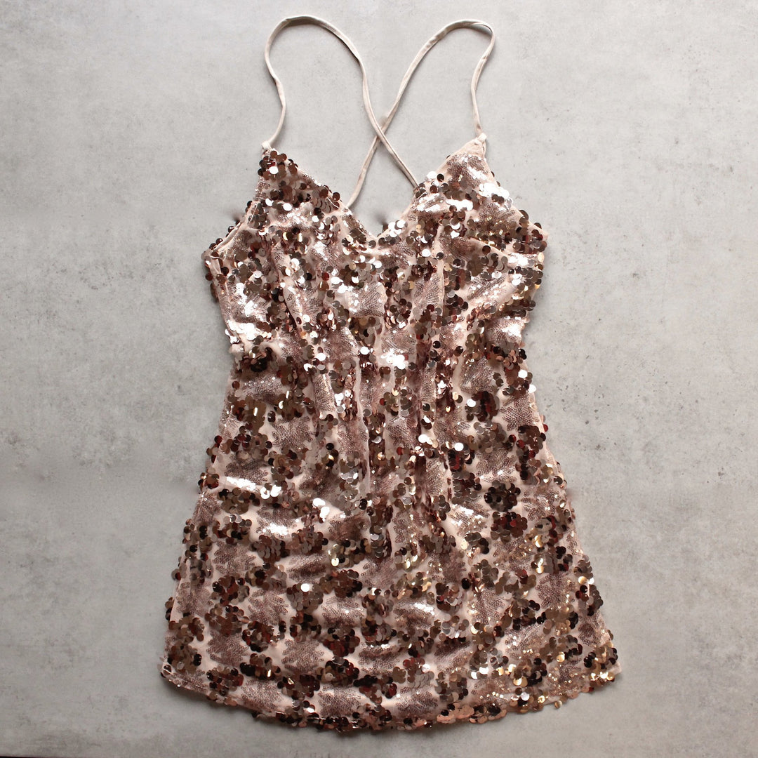 set the tone sequin disc mini dress - rose gold - shophearts - 1