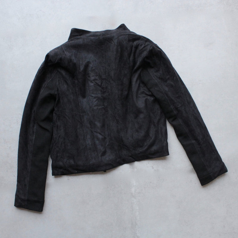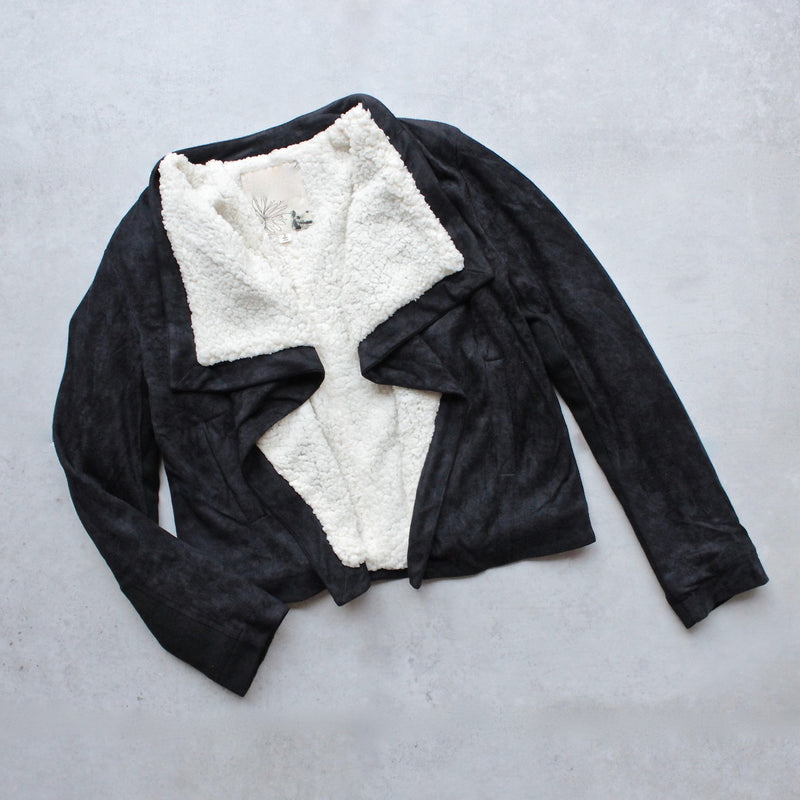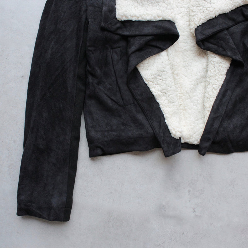SH faux shearling-trim suede jacket - black - shophearts - 1