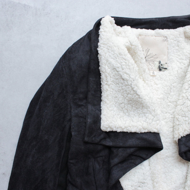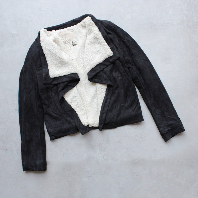 Final Sale - SH Faux Shearling Trim Suede Jacket in Black