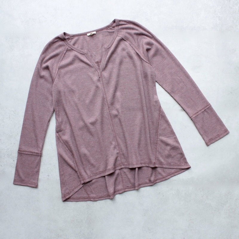 SH Thermal Long Sleeve V-Neck Top in Dusty Pink