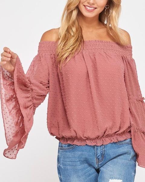 This sheer smocked off-the-shoulder top with swiss dot detailing is guaranteed to catch people's eyes! Pair this with your favorite jeans and shoes for a cute everyday look.