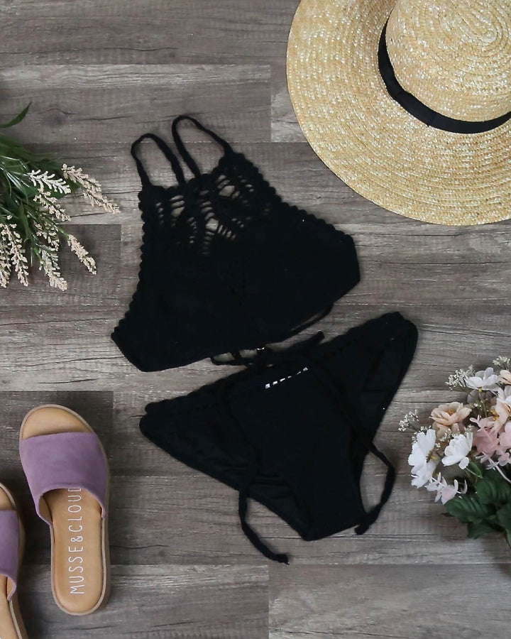 Final Sale - Somedays Lovin - Feeling Free Crochet Bikini Separates in Black