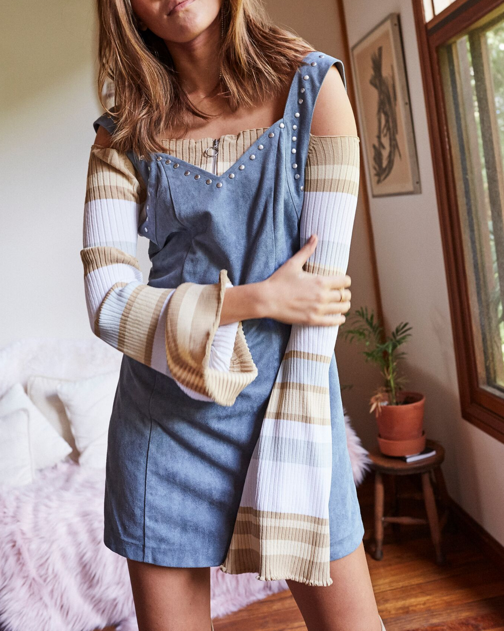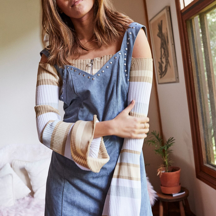 Final Sale - Somedays Lovin - Slate Sky Faux Suede Pinafore Dress