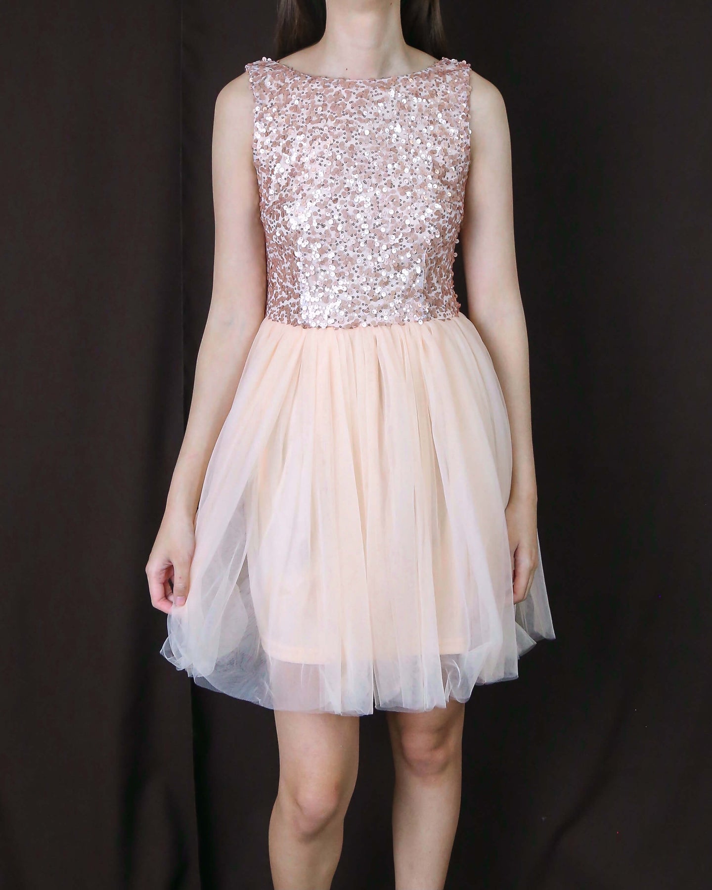 Sugar Plum Dazzling Sequin Darling Party Dress in Rose Pink/Peachy Pink