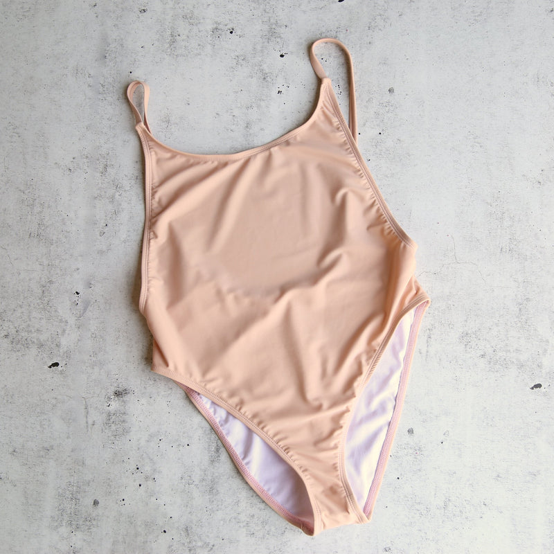 Features a deep scoop neck, high-cut leg / vintage inspired design, low back, and thin back straps. Fully lined. Made in the USA.