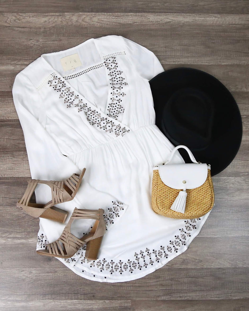 The Jetset Diaries - Aztec Mini Dress in Ivory