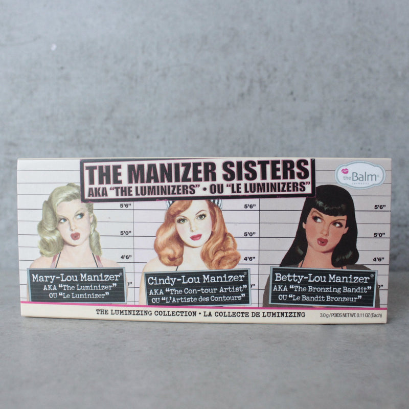 The Manizer Sisters palette contains three triple-milled multi-tasking highlighters, shimmers and shadows.
