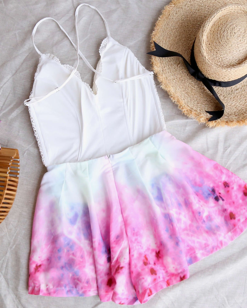 Final Sale - X Shophearts - Tie Dye Watercolor Crochet Open Back Romper